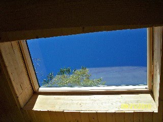 While Frank continued cleaning the logs on the outside of the house, I gave the bathroom door and trim another coat of finish. Then it was back to sanding dry wall. I eventually completed the stub wall by the stairs in the great room, the laundry, and our bedroom. Then it was time to paint ceilings--laundry, bedroom, and at the bottom of the stairs.